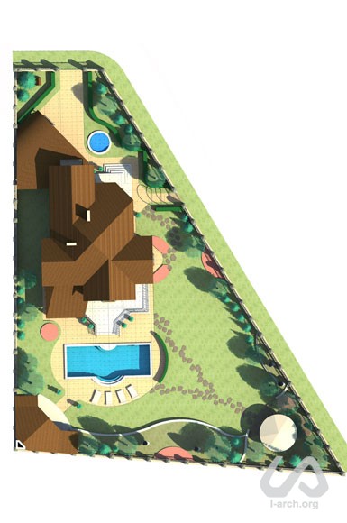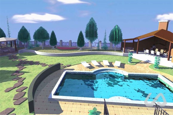 In conversation with the client became clear how to find the solution for the area around the house, so that he could feel comfortable and pleasant to spend time sunbathing by the pool, to sit in company of friends in a separate area with canopy and barbecue, or to enjoy the view of the entire site from a terrace protected from wind,. A particular wish of the owner were a rectangular pool, a pond at the entrance of the site and an area for dogs. From our side, we offered him an interesting solution based on different terraces which would change the flat character of the site. We also suggested to place in the farthest corner of the garden a thick grove of trees and, inside it, a light and romantic sitting place, where you want to go, alone, to read, meditate, or smoke hookah.