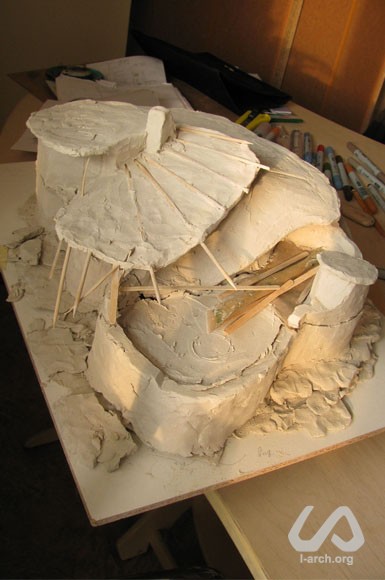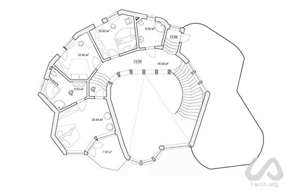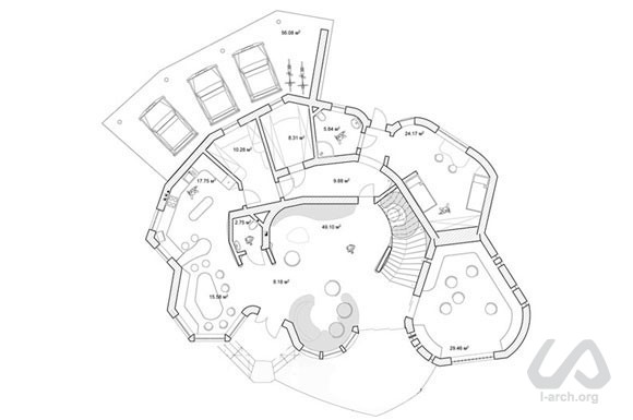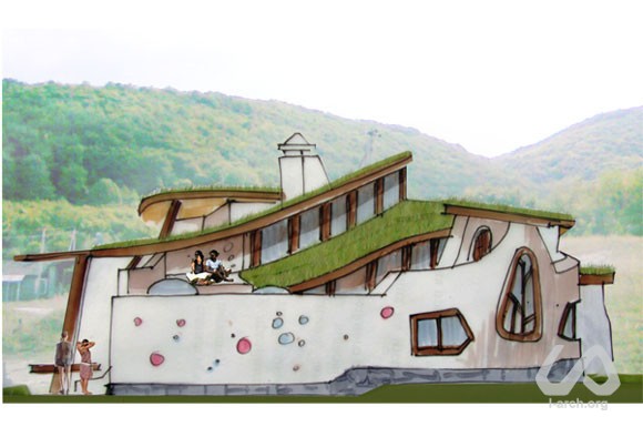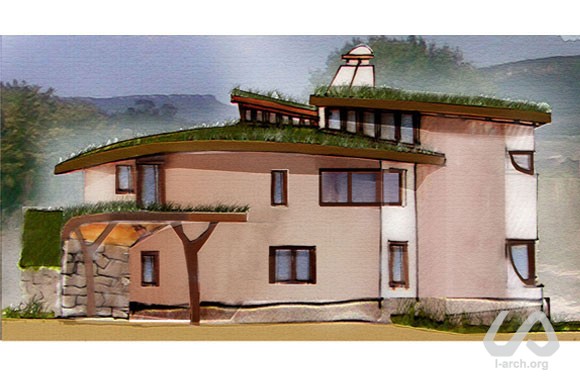 Здание спроектировано как летняя крымская резиденция для молодой семьи, ведущей очень активный образ жизни; этот фактор и продиктовал «перетекающий» открытый план дома. Здесь всегда будет много гостей – а это общение, вечеринки, показы фильмов и многое другое. Сердцем дома стало обширное двухсветное пространство: это одновременно гостиная, столовая, терраса и место для тусовки. При внутренней отделке будут использованы в основном натуральные строительные материалы, а мебель будет встроенной саманной. Не менее важным оказалось и достижение эффективного компромисса между красивым видом на северо-запад от объекта и желательной для пассивного отопления и инсоляции южной – юго-восточной ориентацией. |