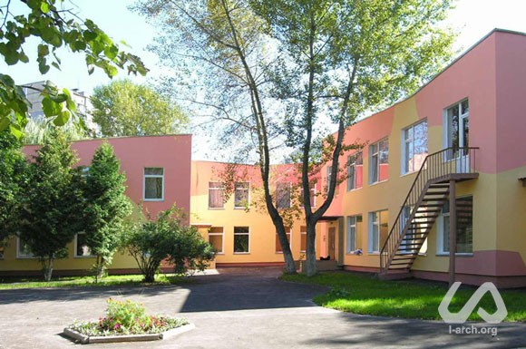 Основним завданням була зміна зовнішнього вигляду старого дитячого садка у Києві у зв'язку із покращенням ізоляції стін. Директор та співробітники попрохали архітектора створити для дітей більш живу й теплу атмосферу, котру неспроможні створити стандартні бетонні конструкції. Відчуття руху й життя було досягнуте за допомогою зміни силуету будівлі парапетами різної висоти у вигляді «хвиль», що біжать уздовж фасаду. Колористичне рішення підкеслює рух парапетів і поділяє фасад на три зони, розриваючи монотонність бетонної будівлі. Кольори (для цоколя – брунатний, для середньої частини – жовтий, для верху – розово-червоний колір) було обрано із задумом подарувати дітям відчуття тепла й радості. |
